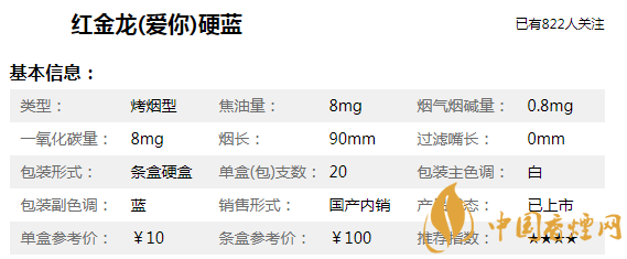 紅金龍(愛(ài)你)硬藍(lán)煙身長(zhǎng)90mm,焦油含量?jī)H為8mg/支,煙支修長(zhǎng)雅致、煙氣淡雅醇厚、口感醇和細(xì)膩。帶給品吸者新鮮有趣的吸食體驗(yàn)和適中的滿足感。吸食口感上,和南京炫赫門比較相似,低焦、低危害對(duì)身體危害也要低一些。只不過(guò)目前部分地區(qū)已經(jīng)買不到該款煙了,消費(fèi)者要注意甄別真假,以免上當(dāng)受騙。