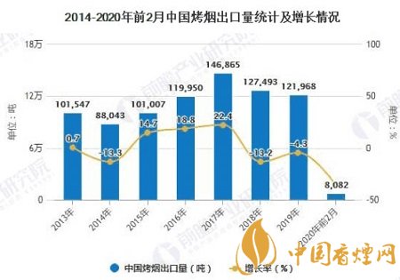 據(jù)中國(guó)海關(guān)總署數(shù)據(jù)顯示,2019年全年中國(guó)烤煙出口量達(dá)到了121968噸,累計(jì)下降4.3%。截止至2020年1-2月中國(guó)烤煙出口量達(dá)到8082噸,相比上年同期減少了4556噸,累計(jì)下降36.1%。