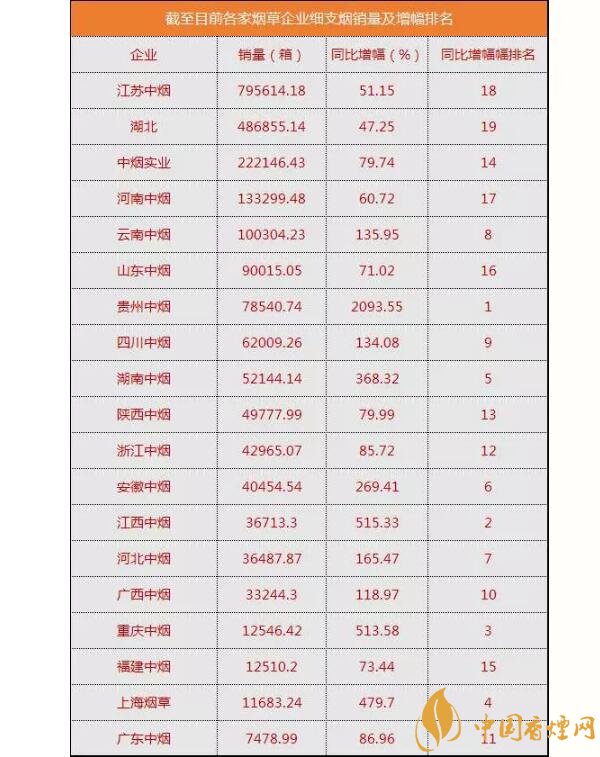 表格中,細支煙銷售量排名銷量總量位居首位的依然是江蘇中煙。雖然,今年各地反映炫赫門限量供應,但依然沒有撼動蘇產(chǎn)細支第一的地位。最新統(tǒng)計消息稱,南京(炫赫門)截至11月底的銷量早已突破了55萬箱,這樣的炫赫門真的很贊!增幅最為明顯是貴州中煙,78540.74箱銷量。其中功不可沒的當初貴煙(跨越)。這款去年上市的新品,今年1—11月份的銷量統(tǒng)計,已經(jīng)超過了5.8萬箱,成為了國內(nèi)細支爆珠的第一大規(guī)格。#p#副標題#e#