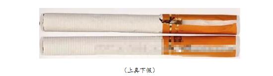 真煙煙支過濾嘴長(zhǎng)度為24mm;假煙煙支過濾嘴較短長(zhǎng)度約為18mm,與真品煙支存在明顯差異。