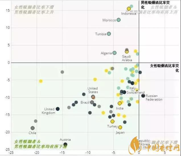 自2000年以來,幾乎全球每個(gè)國(guó)家的女性吸煙者比率都有所下降,女性吸煙的危害有哪些,可能大家意識(shí)到女性吸煙的危害比男性還大。,而男性則迥然不同。