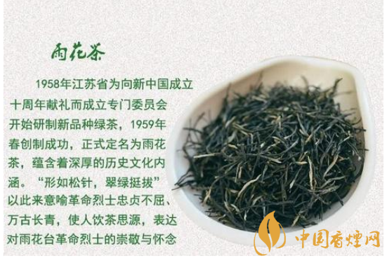 后來,雨花臺(tái)一帶開始遍布蔥郁碧綠的茶園。雨花茶的色、香、味、形俱佳,她外形圓綠、條索緊直、峰苗挺秀,帶有白毫,猶如松針,象征著革命先烈堅(jiān)貞不屈、萬古長青的英雄形象。