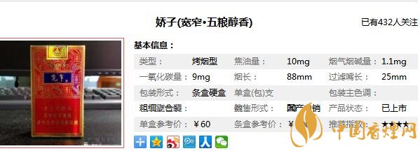 嬌子香煙是四川中煙的代表品牌,而嬌子的寬窄系列,是嬌子香煙中最為火熱的產(chǎn)品,受到許多煙友們的好評(píng),許多人慕名而來(lái)只為尋得,寬窄香煙,那么寬窄五糧醇香多少一包,現(xiàn)在就由香煙網(wǎng)小編為大家介紹寬窄五糧醇香香煙價(jià)格圖片。