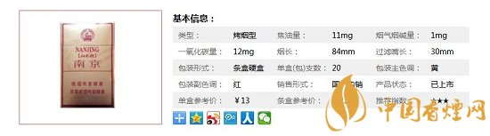 | 類(lèi)型 :烤煙型 | 焦油量 :11mg | 煙氣煙堿量 :1mg | 一氧化碳量 :12mg |