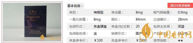 | 類(lèi)型 :烤煙型 | 焦油量 :8mg | 煙氣煙堿量 :0.9mg | 一氧化碳量 :8mg |