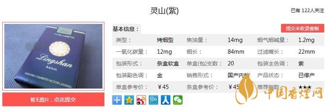 靈山紫香煙通過精心的調(diào)香技術(shù)的研究試驗,其內(nèi)在品質(zhì)以突出的“淡淡蓮花香韻”為主體風(fēng)格,賦予清新、優(yōu)雅、柔和、細膩的香氣,口感、余味干凈、舒適,真正滿足高層次消費者的品位追求。經(jīng)香煙網(wǎng)小編市場調(diào)查靈山紫售價為45元/包。