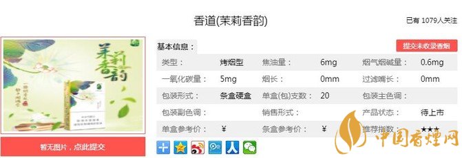 一縷煙香起,靜中開鴻蒙。“泰山(茉莉香韻)”是“茶甜香”創(chuàng)新品類的代表作,它深刻洞悉了“煙者嗜茶”的傳統(tǒng)消費(fèi)習(xí)慣,遵照四季時(shí)令之主流茶品消費(fèi)選擇,形成了一套“煙茶融合,香韻交糅”的創(chuàng)新體驗(yàn)。經(jīng)香煙網(wǎng)小編市場(chǎng)調(diào)查泰山茉莉香韻售價(jià)為50元/包。