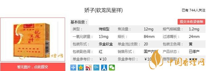 龍鳳呈祥經(jīng)典產(chǎn)品,嬌子新裝貴氣登場,品質(zhì)價格一脈相承。煙草本香透發(fā),煙氣細(xì)膩柔和,口感純凈舒適,回味綿長津甜,更特有紅茶香韻,淡雅怡然。經(jīng)香煙網(wǎng)小編市場調(diào)查嬌子軟龍鳳呈祥售價為10元/包。
