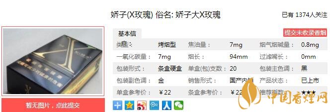 以上便是由香煙網(wǎng)小編為大家介紹的關(guān)于嬌子X(jué)玫瑰多少錢一包 嬌子X(jué)玫瑰口感及參數(shù)介紹的相關(guān)信息,想要了解更多有關(guān)內(nèi)容請(qǐng)點(diǎn)擊:嬌子寬窄五糧濃香中支多少一包 中支煙領(lǐng)域煙酒融合第一支