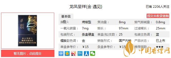 為了更好地滿足消費者需求,重慶中煙產品注重綜合運用優(yōu)質生態(tài)煙葉原料、復合工藝減害、全新打葉復烤和卷煙加工工藝等諸多先進技術,賦予新產品獨特品質和魅力。作為重慶中煙和“龍鳳呈祥”品牌在2018年的開年之作,龍鳳呈祥金遇見被寄予厚望。經香煙網小編市場調查龍鳳呈祥金遇見售價為15元/包。