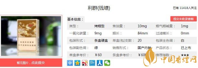 以上便是香煙網(wǎng)小編為大家介紹的關(guān)于利群錢塘香煙價格及口感點評,最漂亮的利群香煙!的相關(guān)信息,看完之后大家是不是對于利群(錢塘)這款香煙的相關(guān)信息更加了解呢。大家還想查詢更多的相關(guān)內(nèi)容歡迎點擊:利群休閑系第一款細支高價煙,僅僅是官方報價就達到了100元一包!
