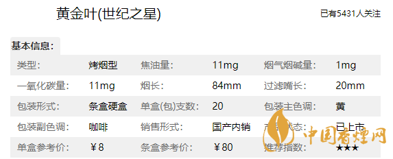 黃金葉香煙品牌定位為中式經(jīng)典醇香型烤煙,一烤透本香、二烤出凈香、三烤成醇香是它的工藝,這款世紀之星也是完美的繼承了品牌的意志,這款香煙品質(zhì)方面非常的好,那么我們在介紹這款黃金葉香煙價格表和圖片之前,先來了解一下黃金葉世紀之星多少錢一盒,它的零售參考價為8元/包。