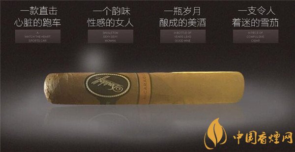 這款雪茄煙外包裝采用酷炫的黑色為主色,配以金色為輔色系,色系運(yùn)用盡顯老練與成穩(wěn),又透露著說不出的高雅,茄體采用黑色的鋁管裝置,很有特點(diǎn),茄體呈現(xiàn)為深棕色,每個(gè)茄體上都配有雙標(biāo)環(huán),顯得這款雪茄格外的高貴,特別的與眾不同,感覺上是專為成功人士和時(shí)尚精英量身打造的一款雪茄煙。