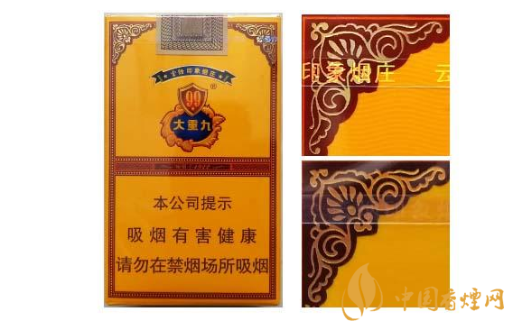 細(xì)支大九采用硬盒包裝,外觀印刷設(shè)計(jì)沒(méi)有什么改變,無(wú)雜質(zhì)的金礦黃襯托盾牌花邊“大重九”,背面是麥穗包裹99,簡(jiǎn)單大氣的包裝卻不失豪華端莊,那么這款大重九多少錢一包,它的價(jià)格為100元/包。