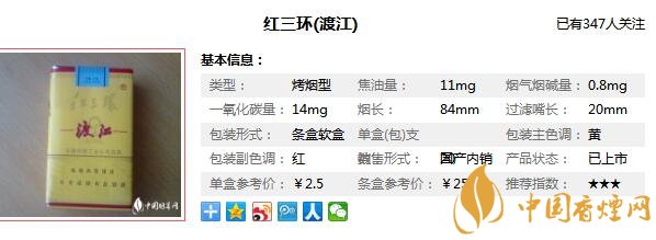 紅三環(huán)渡江香煙參數(shù)信息