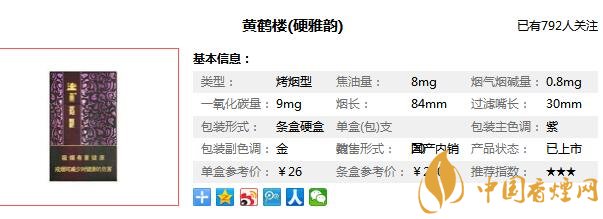 以上內(nèi)容是由香煙網(wǎng)小編為大家收集以及整理的關(guān)于,黃鶴樓硬雅韻多少錢一包以及黃鶴樓雅韻硬盒價(jià)格圖片相關(guān)的信息,了解更多有關(guān)信息請點(diǎn)擊:黃鶴樓雪茄型香煙價(jià)格表。