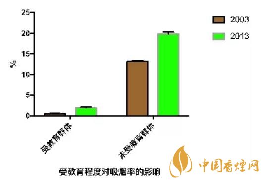 研究結(jié)果顯示,2003年,2008年以及2013年我國的煙民比例分別為26.0%,24.9%,25.2%,始終高居不下。2003年,男性煙民的數(shù)量相對較高(48.4%)。女性群體的煙民比例則相對較低(3.1%)。