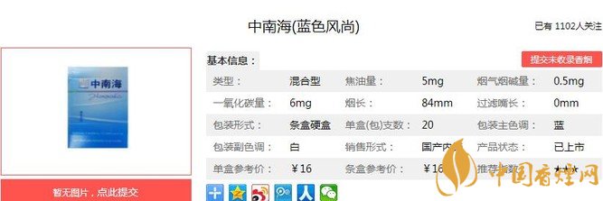 中南海5mg細(xì)支價(jià)格表一覽 混合型細(xì)支煙的引領(lǐng)者