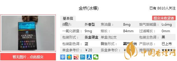 金橋(冰爆)是薄荷味的爆珠,在這款香煙之前,薄荷味爆珠產(chǎn)品嬌子一直占據(jù)主要市場。金橋(冰爆)后來居上,薄荷煙清涼潤喉,對長期吸食卷煙的消費(fèi)者來說,有新鮮感。經(jīng)香煙網(wǎng)小編市場調(diào)查金橋冰爆售價為20元/包。