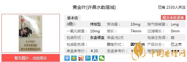以上便是由香煙網(wǎng)小編為大家介紹的關(guān)于黃金葉許昌水韻蓮城價(jià)格 水韻蓮城口感及參數(shù)介紹的相關(guān)信息,想要了解更多有關(guān)內(nèi)容請(qǐng)點(diǎn)擊:非賣版12支裝低焦油中華香煙包裝欣賞及口感測(cè)評(píng)