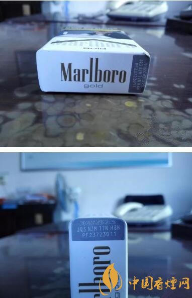 煙盒底端沒(méi)有數(shù)字和字母組合的鋼印號(hào)碼,但是有PF開(kāi)頭的噴碼。免稅版本的煙盒底端,則是印制有LA的鋼印號(hào)碼。