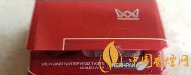 老版的Logo區(qū)以銀色勾框,Logo區(qū)頂部一部分在上蓋位置。由于煙盒卷折問(wèn)題,這個(gè)Logo外框會(huì)有一定的錯(cuò)位。在Logo區(qū)下,有一條細(xì)細(xì)的銀色條帶,里面用白色印制有AMERICAN BLEND字樣。煙盒中部偏右,則有白色印制的RED字樣,顯示這款煙的煙款為紅標(biāo)。