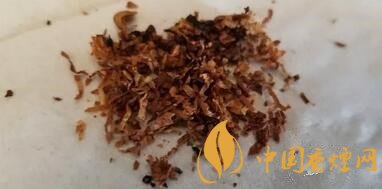 攤開(kāi)煙絲,明黃、棕黃的烤煙煙絲比例較大,間雜有比例稍小的深棕色的晾煙煙絲,未見(jiàn)涂布制絲和膨脹制絲。里面混雜與切成薄片狀的煙梗。從煙絲外觀(guān)看,煙葉的品級(jí)非常好,用料實(shí)在。