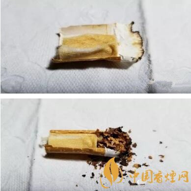 剖開濾嘴,絲束整段顏色偏黃,撕開絲束,內部顏色均勻,煙氣的流速一直算比較恒定可控。煙氣的風味恒定也來源于此。