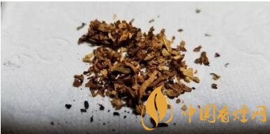攤開煙絲,明黃的烤煙和暗棕的晾煙比例基本接近1:1。有切得很細碎的煙梗交雜其間。烤煙比例比摩洛哥版本要略高一些。