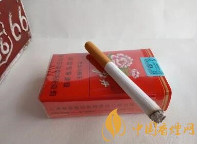煙嘴顏色是黃色,上面隱約可以看到一些白色的小點(diǎn),煙支上面印有牡丹的圖案和logo。
