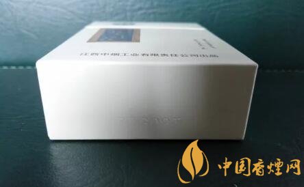 整體的包裝設(shè)計(jì),類似于純白皮版本。王子安的名句“落霞與孤鶩齊飛,秋水共長(zhǎng)天一色”,赫然印制于煙盒正面。