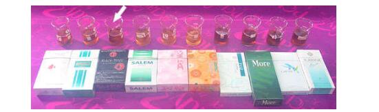 在主流煙氣的氣相物中,最主要的有氮、氧、二氧化碳、一氧化碳和氫。這5種氣體約占總氣相物的90%,占總煙氣釋放量的85%左右。除此之外,還有一些其它化學(xué)成分。其中最主要的有害成分就是煙堿(尼古丁),焦油,一氧化碳。接下來(lái)就讓我們對(duì)這幾種有害物質(zhì)進(jìn)行評(píng)測(cè)。