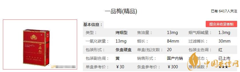 一品梅香煙是1991年創(chuàng)牌的,因?yàn)槭袌鲈?,一品梅香煙在市面上已?jīng)很難看到了。相信大家對(duì)這款香煙沒有太多的了解,下面小編就為大家介紹一下一品梅精品香煙的價(jià)格參數(shù),以及抽過的煙民對(duì)這款一品梅精品香煙口感的評(píng)價(jià)。