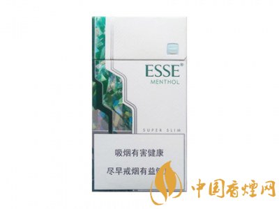 綠色的愛喜煙枝也是綠色的元素,白色過濾嘴環(huán)繞著一圈綠色,ESSE MENTHOL是依舊綠色的。