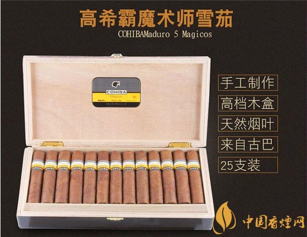 古巴雪茄高希霸魔術(shù)師是一款有品味的男人值得擁有的頂極雪茄,它口感濃郁,淡淡的花香讓品吸者沉醉。茄身結(jié)構(gòu)好,光澤度好且潤度適宜,茄身為棕黃色稍偏深咖色,細(xì)看茄身紋路有些深咖色斑點(diǎn)。高希霸魔術(shù)師25支裝好抽嗎?下面由香煙網(wǎng)小編為大家介紹一下這款古巴雪茄高希霸魔術(shù)師怎么樣。