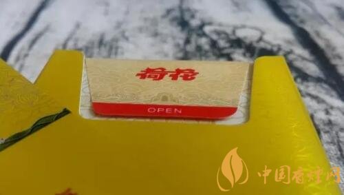 4、向右推動OPEN標識部位到盡頭,完整地開蓋。裝置煙支的內盒下部,金一品荷花鉆石香煙正反兩面各有一條弧形滑道。設計彰顯新穎與精致,這也是其百元價值的體現之一。
