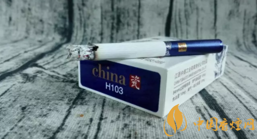 煙盒正面主圖為青花騰龍?jiān)煨?,張牙舞爪,欲入深海而攪起驚濤駭浪。煙盒頂端,印有青花瓷瓶的圖案,同時(shí)加以文字簡(jiǎn)介。煙盒底端主色調(diào)為深藍(lán),與正反兩面的藍(lán)色青花龍色調(diào)相輔相成。China和瓷的品名,再次印制于此部位。H103,是指產(chǎn)品的隨機(jī)編號(hào)。