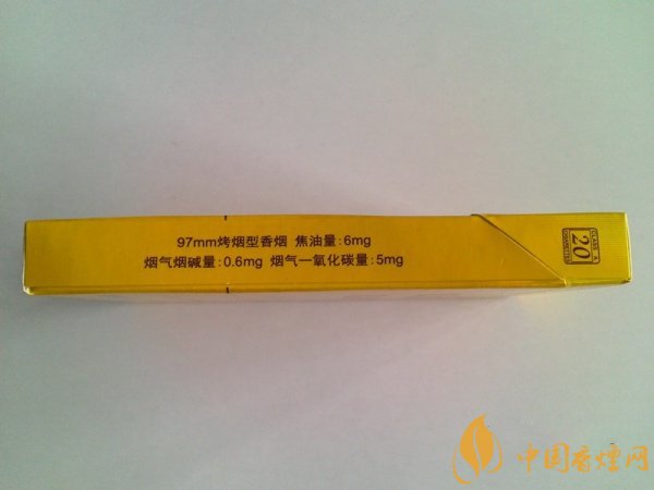 右側(cè)為詳細(xì)的商品信息,97mm烤煙型香煙,三項(xiàng)理化指標(biāo)相對均衡:焦油量6mg 煙氣煙堿量0.6mg 煙氣一氧化碳量5mg。