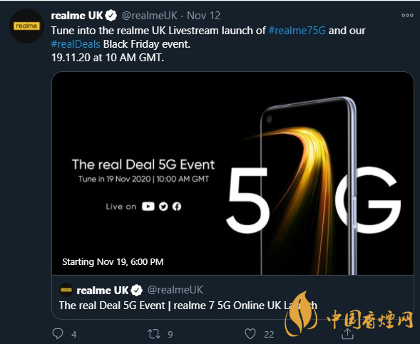 昨天,Realme75G通過了NBTC認證。隨后,realme在Twitter上正式確認了realme75G的發(fā)布日期:2020年11月19日。下面跟著小編來一起了解一下吧。