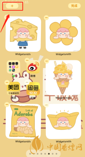 2、長按桌面空白處,再點擊左上角“+”號;
