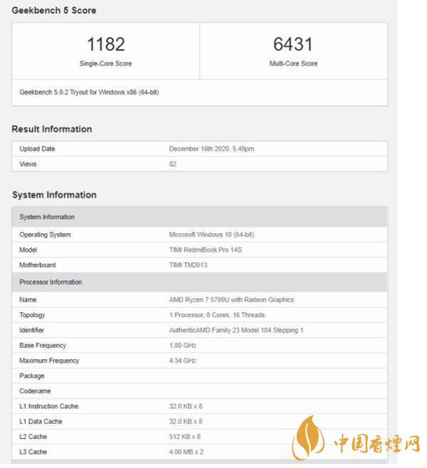 如上圖所示,RedmiBook Pro 14S 搭載的 R7 5700U 為 8 核 16 線程,主頻 1.8GHz,加速頻率 4.34GHz,8MB 三級(jí)緩存。根據(jù)之前的爆料,R7 5700U 可能是 R7 4800U 的馬甲版,真正的 Zen 3 架構(gòu)型號(hào)為 R7 5800U。