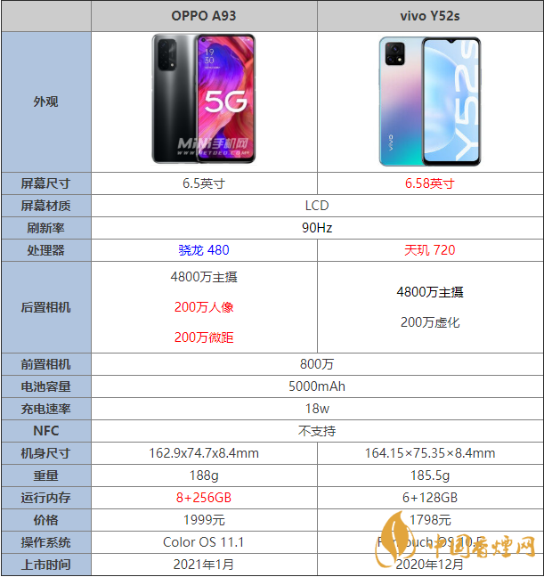 OPPOA93和vivoY52s,這兩款手機(jī)處于同等價(jià)位,那么OPPOA93和vivoY52s在配置上有什么區(qū)別,哪個(gè)性價(jià)比更高更值得入手呢,接下來香煙網(wǎng)小編就為大家?guī)砹薕PPOA93和vivoY52s參數(shù)對比,感興趣的朋友一起來看看吧!