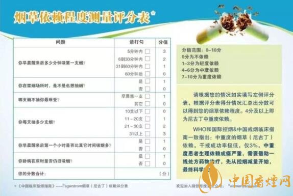 煙草成癮即尼古丁成癮,是國際衛(wèi)生組織公認(rèn)的一項(xiàng)疾病,需要用科學(xué)的方法戒煙,才能達(dá)到最好的戒煙效果。在戒煙前,煙民朋友應(yīng)充分了解自身情況??筛鶕?jù)上方的《煙草依賴程度評分表》,對自己的煙癮水平進(jìn)行一個評估。0-3分為輕度煙草依賴,4-6分為中度煙草依賴,7分以上為重度依賴。超過4分的煙民朋友們,已經(jīng)為中重度煙草依賴患者。對于這類煙民朋友,“干戒”成功率極低,僅為3%,建議去正規(guī)醫(yī)院的戒煙門診,用藥物治療的方法來幫助擺脫煙草依賴,減少戒斷反應(yīng),降低痛苦,用科學(xué)的方法盡早戒煙。