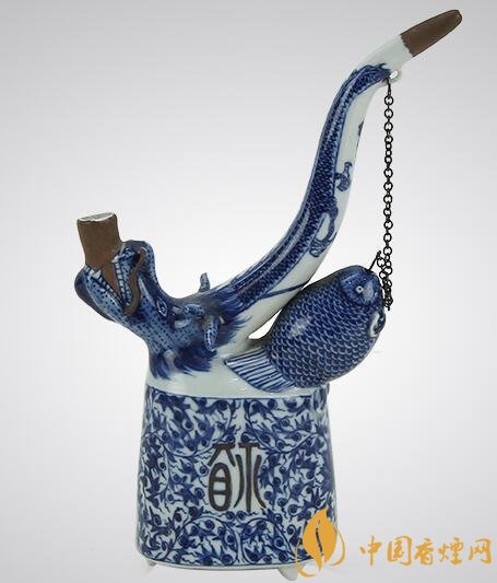 在明朝時期便傳入中國,后生成蘭州水煙、陜西水煙等品種,但由于市場萎縮,已經(jīng)幾乎消失,直至清朝又逐漸重現(xiàn)。乾隆中葉刊行的陸耀《煙譜》提到含水吸煙的情形。在當(dāng)時流行鼻煙壺、旱煙、水煙壺和潮煙。鼻煙壺是文人雅士喜愛居多,旱煙多受普通老百姓歡迎,水煙壺則是達官貴族地位的象征。水煙壺在當(dāng)時的產(chǎn)量很大,樣式也是各種各樣。