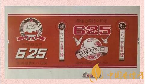 “625”牌卷煙 1950年6月25日,朝鮮半島爆發(fā)了大規(guī)模的戰(zhàn)爭。河南惠民煙廠據(jù)此出品了煙標,以警示人們珍惜和平。煙標上畫有和平鴿,并寫有“世界和平日”,非常醒目。