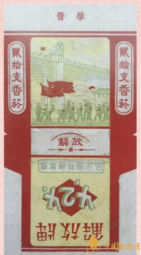 “424”解放牌卷煙 1949年4月24日,中國人民解放軍攻克了太原。太原戰(zhàn)役規(guī)模龐大,戰(zhàn)況慘烈,是中國人民解放軍經(jīng)典的戰(zhàn)役之一。山西晉華卷煙廠為紀念此日,出品“424”解放牌卷煙。煙標上面是在太原首義門前,中國人民解放軍軍隊敲鑼吹號、勝利凱旋的畫面。