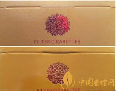 真品卷煙花團(tuán)圖案清晰、立體感強(qiáng),燙金線明亮。該款假冒卷煙圖案模糊,無立體感。