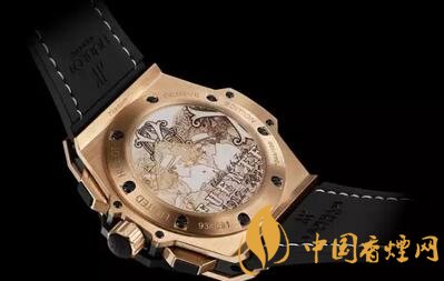 富恩特的宇舶表背面帶有富恩特雪茄經(jīng)典的父子煙田造型。