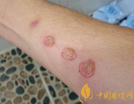 煙疤的形狀多是圓形,和香煙頭的形狀基本一致,可萎縮,可凹陷,可增生;形成疤痕疙瘩者,可向外圍生長(zhǎng)。在顏色上,有膚色,有色素減退的,色素沉著的,或紅色的。