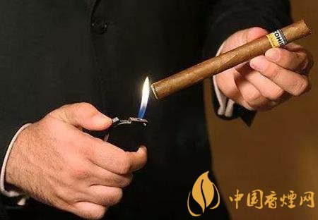 有些人習慣像點香煙那樣點燃雪茄,彎下腰一邊點一邊吸,這樣做實在有失風雅。給雪茄點火,要橫著拿住雪茄,將吸食那端抬起,同水平面呈45°角傾斜,靠近火苗但不要馬上接觸,輕輕地旋轉一周,把雪茄預熱一下,把濕氣先烘干,然后再接觸火苗,從邊緣到中間均勻地燃燒。
